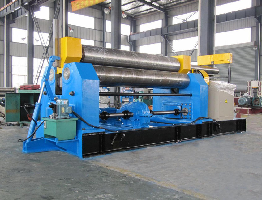 該三輥卷板機的缺點是板材端部需借助其它設備進行預彎。