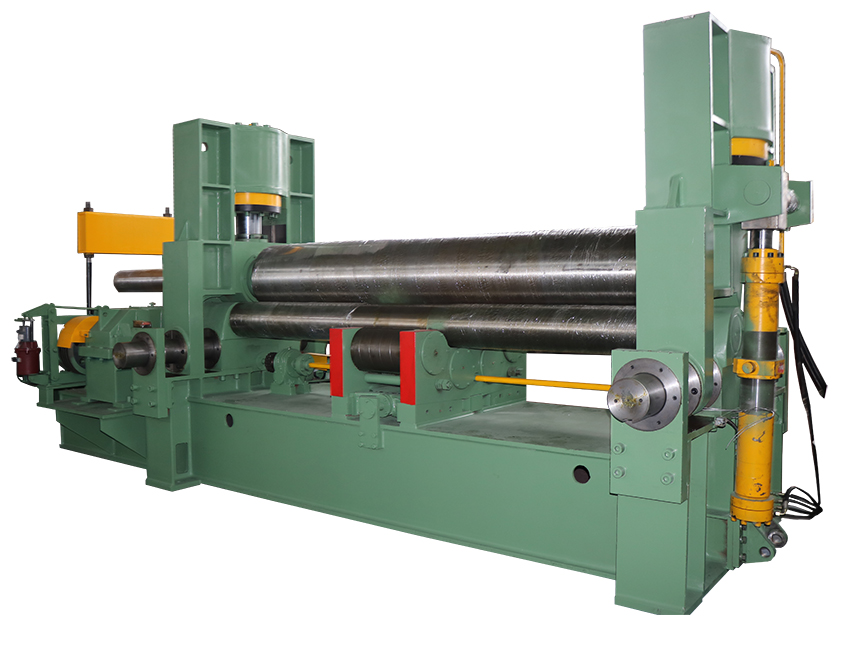 W11SNC萬能式三輥卷板機是一種雙夾板彎板機。 上輥為液壓驅動。 上輥可水平和垂直調節,兩個下輥是固定的。 所有合金鋼輥均經過感應淬火和熱處理。 經過感應淬火處理后,所有的輥都將被研磨和拋光。