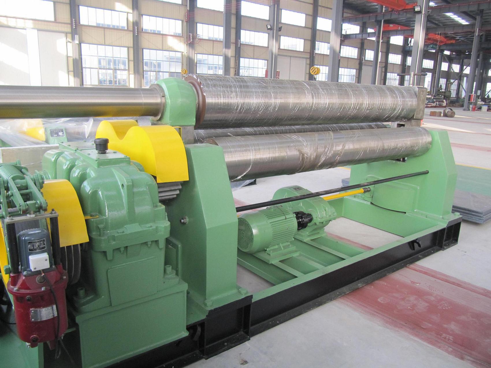 三輥卷板機有機械式和液壓式:機械式三輥卷板機分為對稱和非對稱??蓪⒔饘侔宀木沓蓤A形、弧形和一定范圍內的錐形工件。